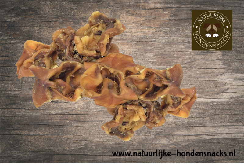Varkensoor StukjesIpv alleen de flapjes zijn dit alleen de schelpen van het varkensoor. Een kleinere traktatie dan een oor, voor wanneer een heel oor te veel van het goede is!